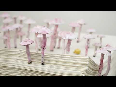 An ergonomic chair, a desk turned over, a stack of papers, and an archive box are some of the figures that constitute Pearch’s unruly landscape of petrified workers, of labor, storage, and grind. They are the ruins from which things grow — old modernist symbols that form the humus for non-human growth. Cacti and mushrooms grow stubbornly, while lemons repose. They form the place where almonds are lost and then found anew — where one falls in and out of the containment and control of psychic life, where the scenography of psychopolitics becomes an archeological scene of abandonment and decay that nourishes a renewed, yet still wonky life. Where the I becomes another, born of Thames mud. Where empty containers float against a monochrome ocean blue — the shell that constitutes seafare and trade, empty and lost at sea, the containment of life itself, gone. Where in the midst of this entropic soup a pigeon looks at itself in the mirror, and a mouse plays dead. Where from an almond the I sprouts.